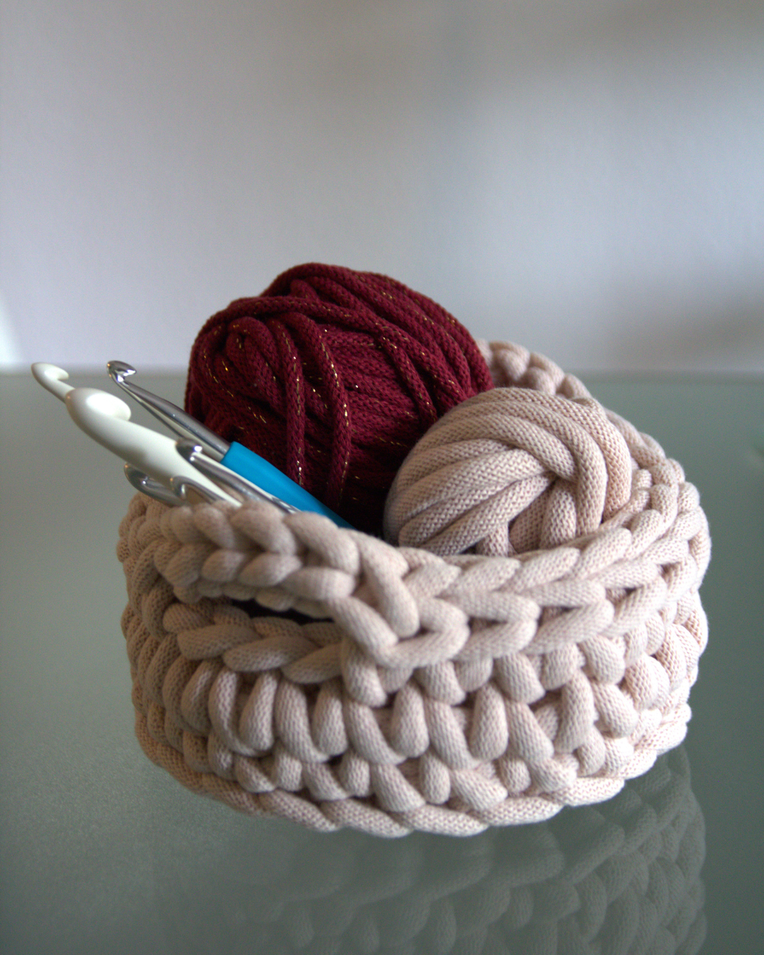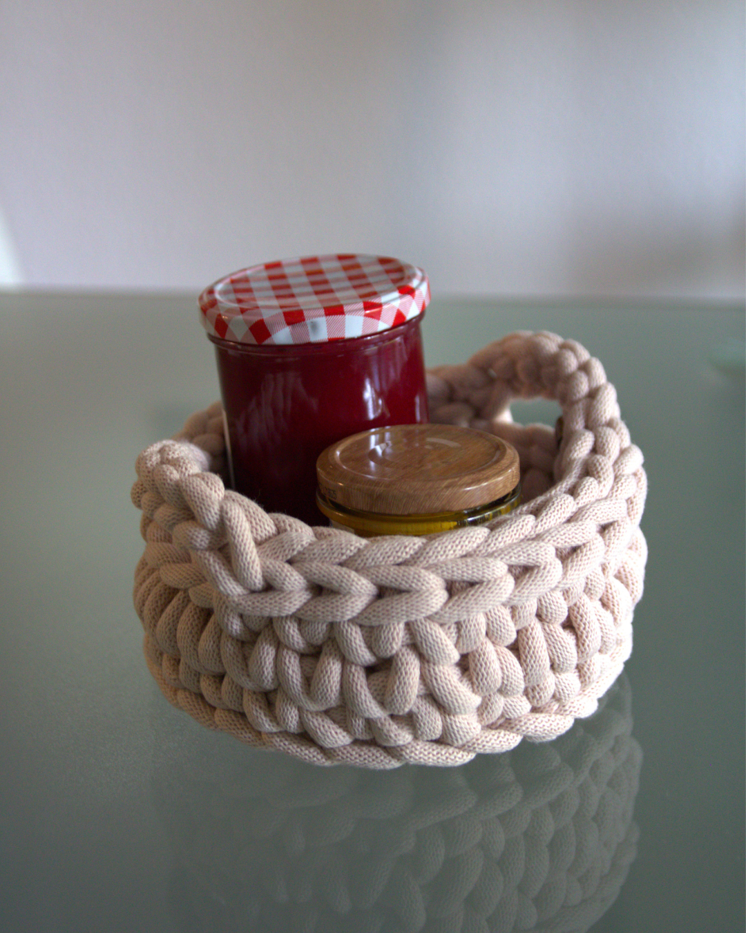 Häkelkorb aus 9 mm Garn mit zwei Henkeln (ca. 20 cm)